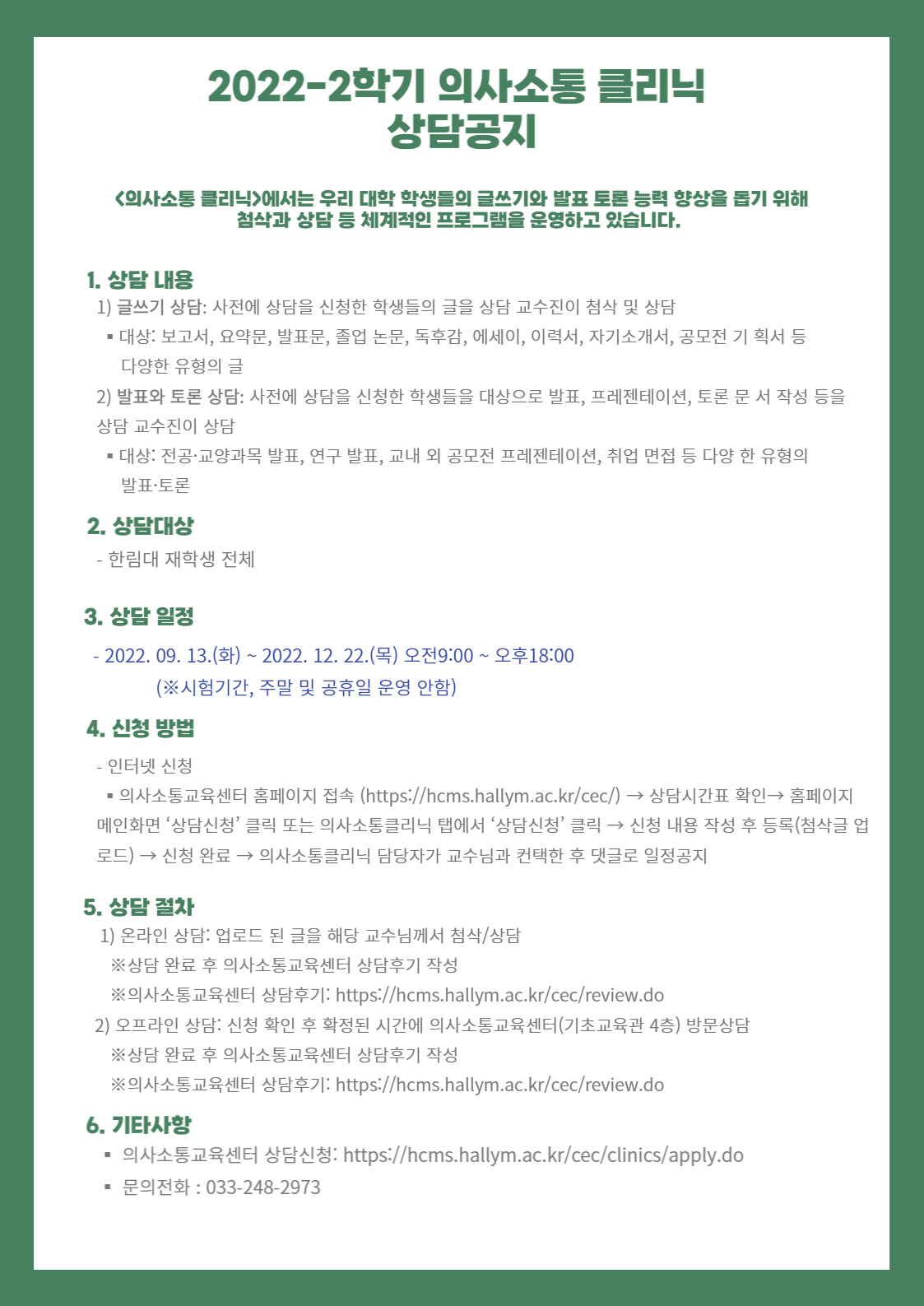 2022-2학기 의사소통클리닉 상담 공지