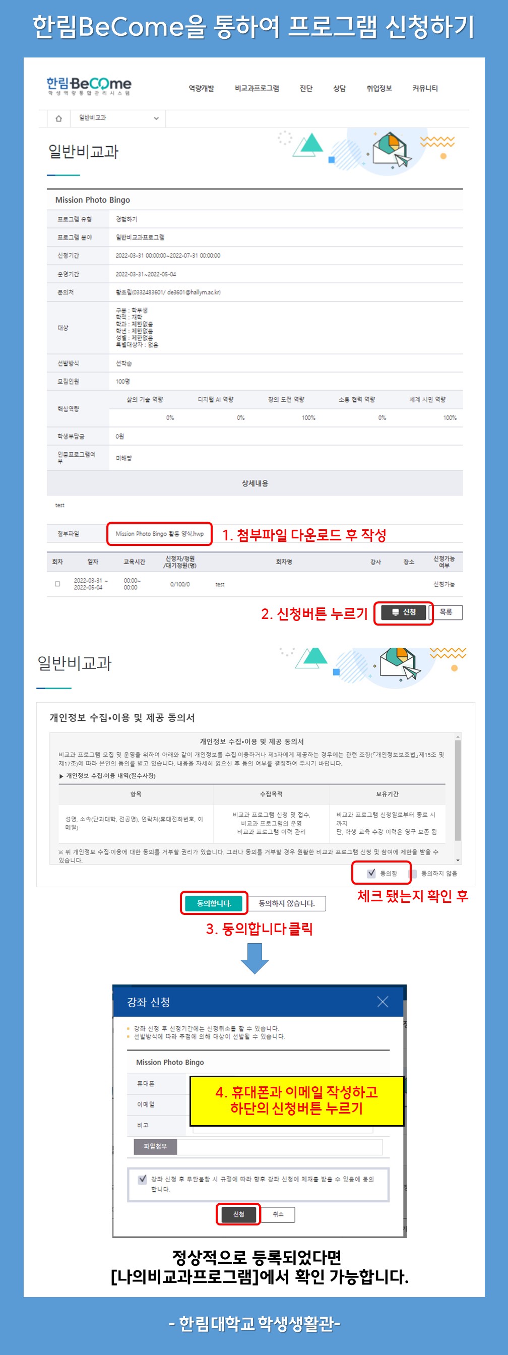1. 한림BeCome을 통하여 프로그램 신청하기