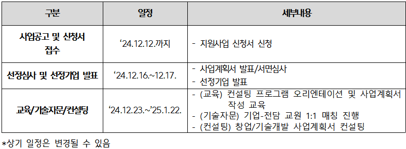 ○ 사업기간: 2024. 11. ~ 2025. 1.