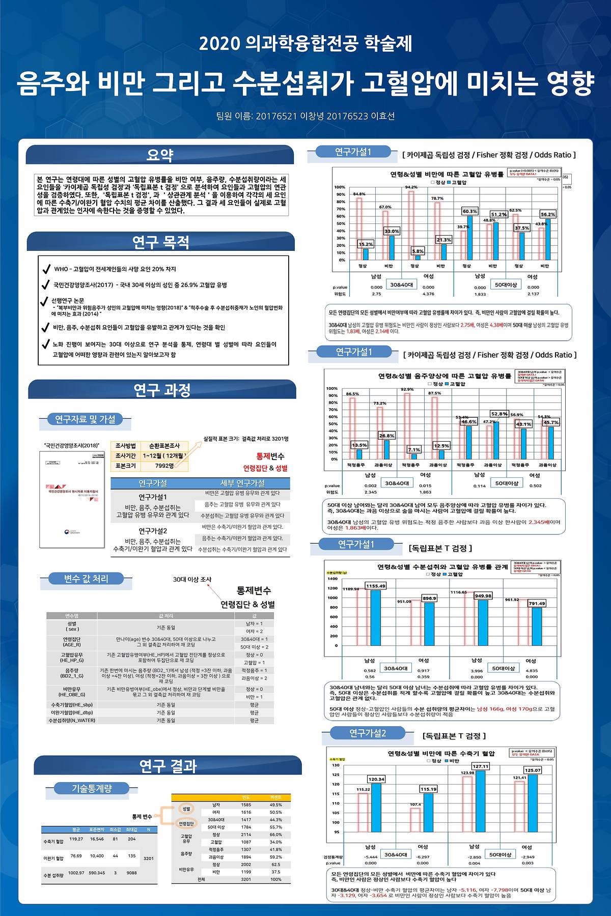 [2020 의과학융합전공 학술제] 음주와 비만 그리고 수분섭취가 고혈압에 미치는 영향