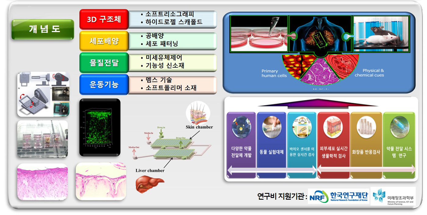 - 세포와 나노기술을 융합하여 조직이나 장기를 재구축하고 여기에 미세유체기술을 통합함으로써 의료 및 생물학 실험을 보다 생체와 유사한 환경에서 성공적으로 수행할 수 있는 체외생체칩을 구현하여 임상실험을 대체하고 개인맞춤형 치료를 위한 약물효능 확인 검사도구 제공
